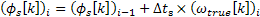 Equation 3.5: True frequency The new phase of each bin can then be calculated by adding the phase shift required to avoid discontinuities. This is done by multiplying the true frequency with the time interval of the synthesis stage as shown in equation 3.6.