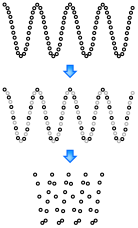 Equation 3.9: Overlap-add of the synthesis frames Sorry about that, it was really painful I know. The good news is that we’re done with most of the maths now. 3.4 ResamplingHey, good news! We have our signal that is now either stretched or compressed in time and the pitch is not changed. Now we need to resample our signal to get back to the initial duration and shift the pitch. Suppose I have a given sampling rate and I want to double the frequencies. The easiest thing to do is to pick only one sample out of two and to output the result.
