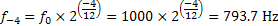 Equation 6.1: Expected frequency for a sine wave of 1000 Hz with a pitch shift of four semitones down